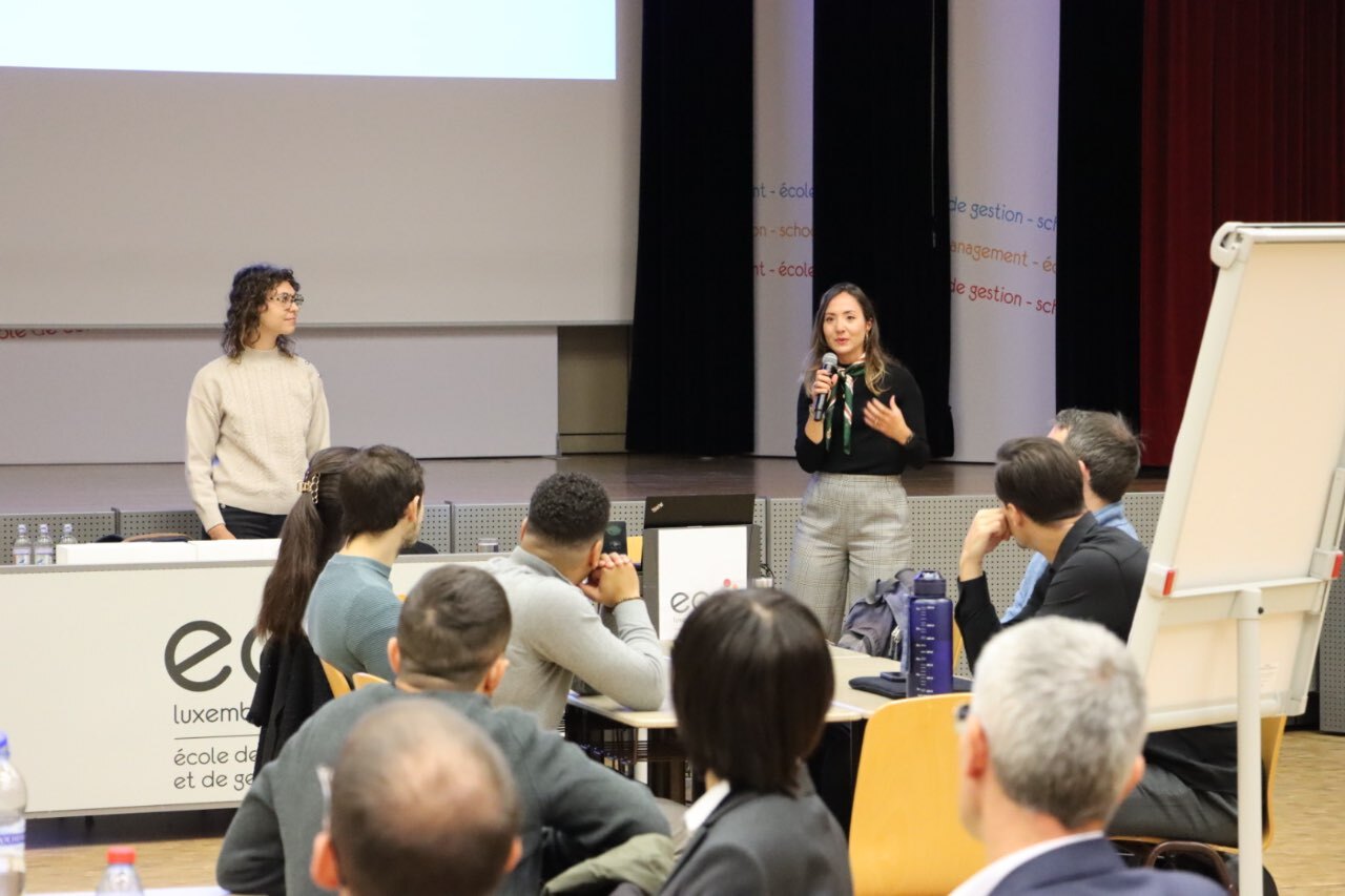 19.05.2025De 17. Mee war d'Porte ouverte vum ECG. Vill Leit hunn sech iwwert eis Schouloffer an eis Schoul am speziellen informéiert. Ee vun den Highlighte waren d’Präsentatioune vun den zwou neie Sektiounen am Enseignement secondaire général : Affaires économiques an Data Literacy. Op der Porte ouverte goufen och eis fënnef BTS Formatioune virgestallt.