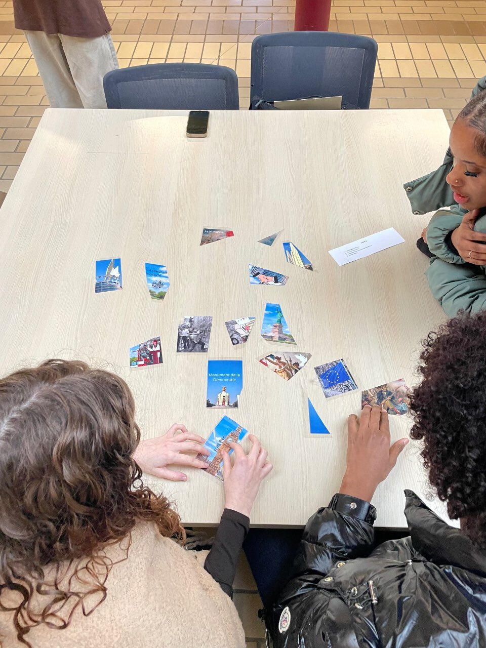 Eis 4e Schüler hunn hei an véier verschiddenen Atelieren Aufgaben geléist a sech dobäi mat de Wäerter vun eiser Demokratie auserneegesat.
