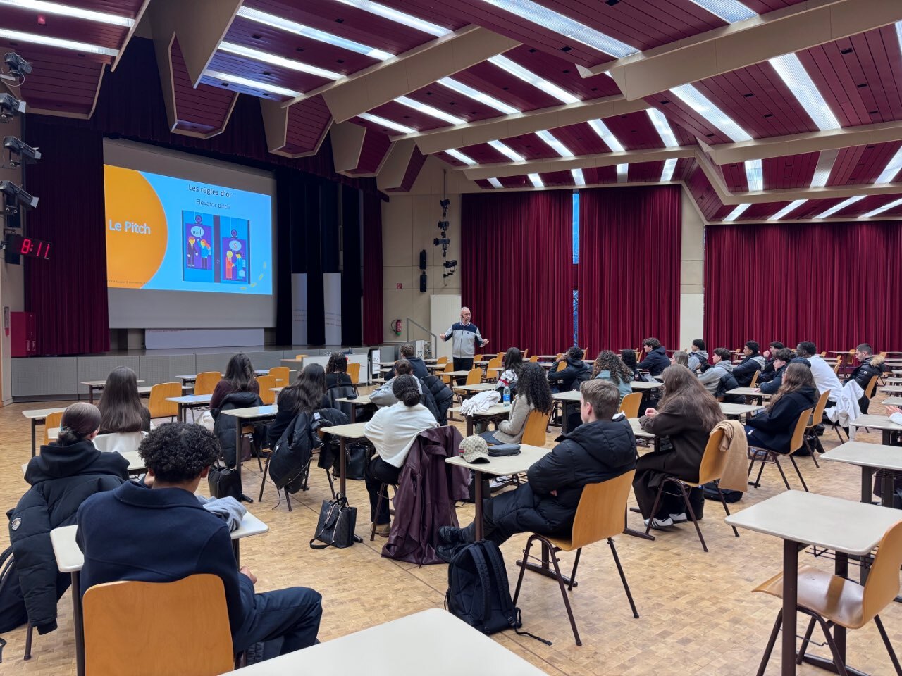 Entrepreneurial weeks | 27.11.2025Ce mercredi 26 novembre 2025, nos élèves ont participé à un workshop inspirant animé par Patrick Reisdorff, entièrement dédié à l’art du pitch. Ils ont exploré les bases essentielles d’une prise de parole convaincante : techniques de présentation, communication efficace, importance du langage corporel et du non verbal, ainsi que les règles d’or de l’elevator pitch.