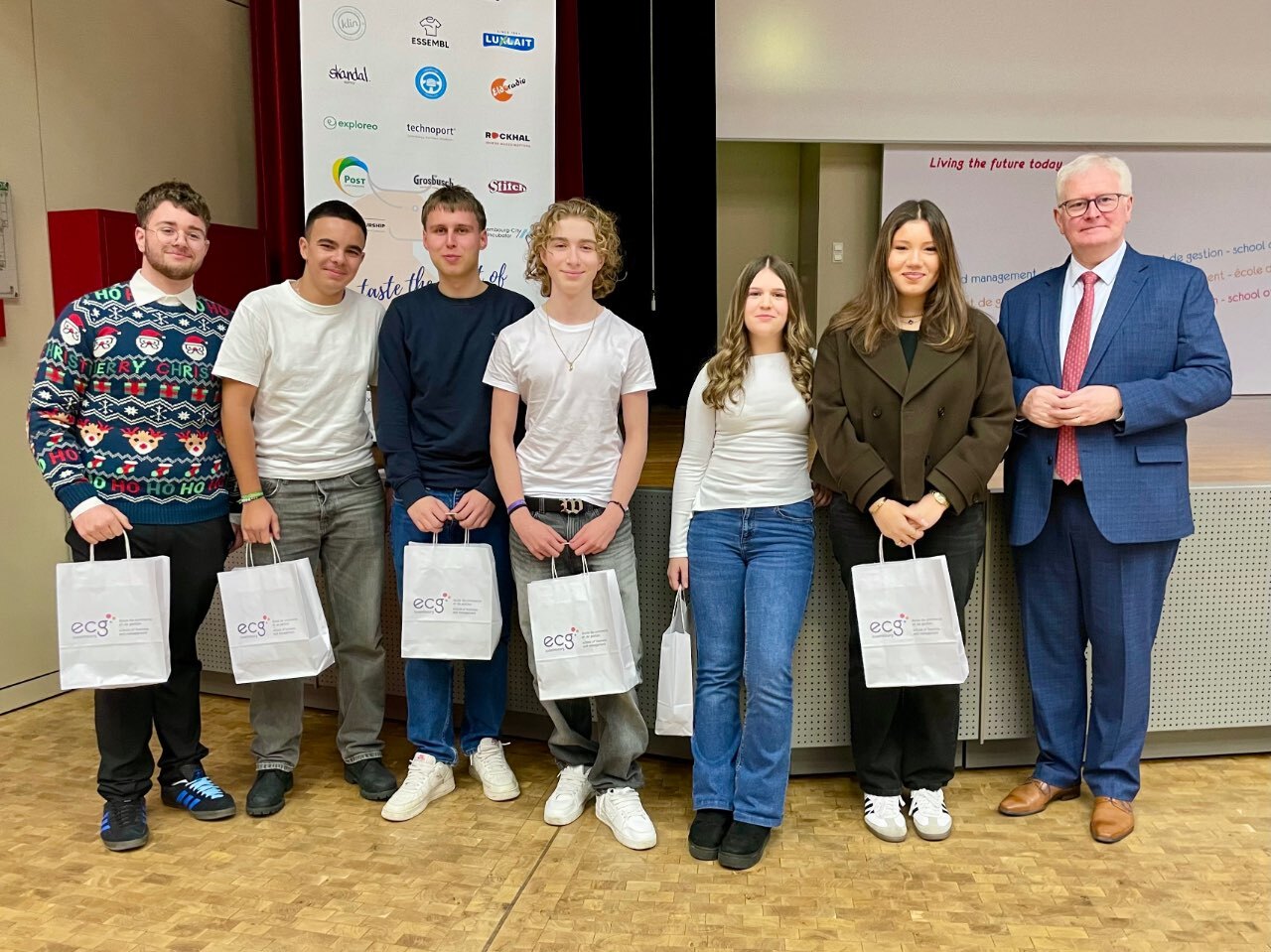 Enterpreneurship at ECG | 11.12.2025Les élèves des classes 3CN, 2GAE, 2GDL, ainsi que certains élèves des classes 2GMM, ont consacré cette première semaine entrepreneuriale à leurs mini-entreprises. Ils ont eu la chance de présenter leur premier pitch de produit ou service le jeudi 11 décembre, devant leurs parents et un jury composé de Monsieur Pesch du comité des parents d’élèves, de Madame Felten professeur-stagiaire en sciences économiques et sociales et de Monsieur Fortes Gomes professeur en sciences économiques et sociales.