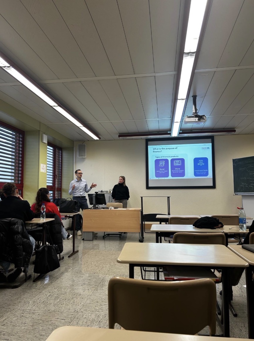 Deux experts de PwC sont venus à l’ECG pour présenter en détail le thème de la finance durable, illustré par des exemples concrets. Grâce à leurs explications, les élèves ont acquis de nouvelles connaissances qu’ils appliquent directement dans la gestion de leur portefeuille.