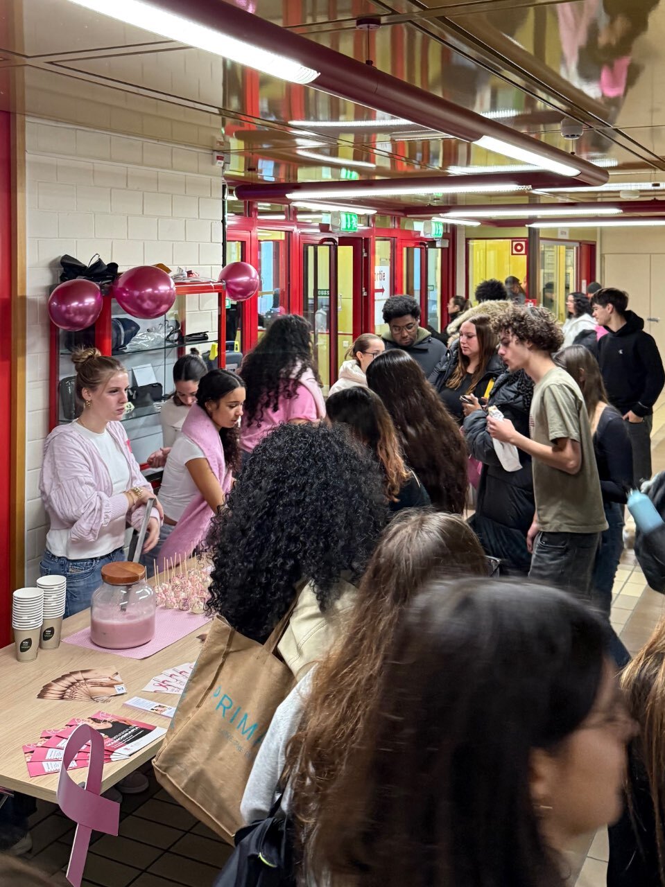 Engagement humanitaire | 24.10.2025De Schülercomité vum ECG hat di flott Iddi dëse Freiden (24.10.25) an de Pausen e Stand mat Kuch a Gedrénks ze organiséieren, dëst am Kader vum Octobre en rose. Dëst ass eng Initiativ fir op Broschtkriibs opmierksam ze maachen. E grousse Merci un Europa Donna Luxembourg ASBL déi si mat flotte Gadget’en ënnerstëtzt huet. Den Erléis vun dëser flotter Initiativ wäert gespent ginn.