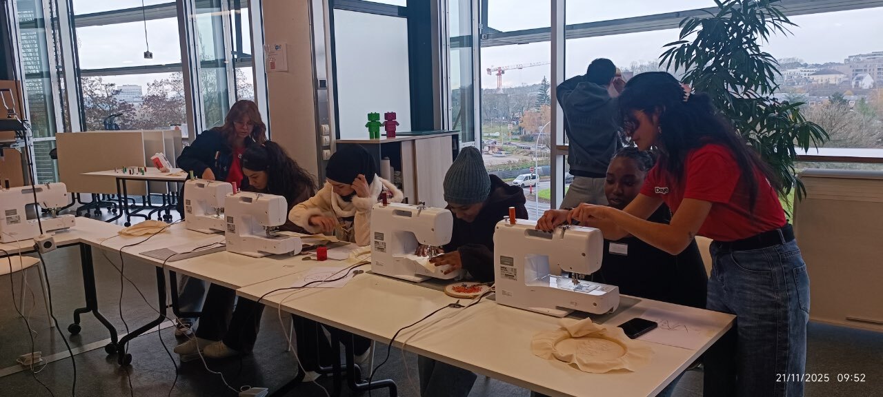 CLIJA (Primo arrivants) | 24.11.2025La classe de Clija 1 s'est essayée à la broderie avec une machine à coudre. Après avoir décidé d'un motif, ils l'ont dessiné puis brodé.